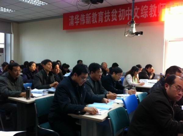 本次培训由香港伟新教育基金有限公司赞助,系2011年清华伟新教育扶贫中小学教师系列培训的第十五期培训。共有来自安徽、甘肃、贵州、河北、河南、湖南、江西、内蒙、宁夏青海、山西、四川、新疆、陕西等36个县市区的77名地理老师来北京参加面授学习。同时,还有河北赞皇、内蒙化德、山西浑源、湖南宜章、甘肃渭源、四川会理等近千名初中文综老师在远程收看。