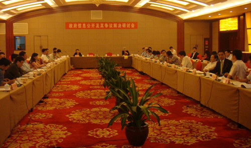 2013年9月27日,由中国政法大学法治政府研究院和美国耶鲁大学法学院中国法律中心共同主办的“政府信息公开及其争议解决研讨会”在北京京仪大酒店多功能会议厅顺利召开,由北京市律师协会行政法专业委员会及北京市朝阳区律师协会行政业务研究会共同协办。此次研讨会同时也是王敬波教授与耶鲁大学合作开展的政府信息公开促进项目系列活动的一部分,该项目自2010年以来,已经连续开展两年,主要通过学术研讨、培训、法律援助等形式促进政府信息公开的持续推进。除来自美国的专家外,国务院办公厅、国务院法制办、最高人民法院、监察部、商务部、银监会、司法部、北京高级人民法院、上海市高级人民法院、北京市办公厅、北京市法制办、海淀法院、国家行政学院、北京律师协会、北京朝阳律师协会等机构的官员、法官、学者、律师70多人参加会议。