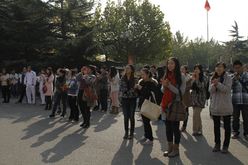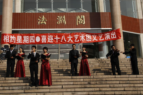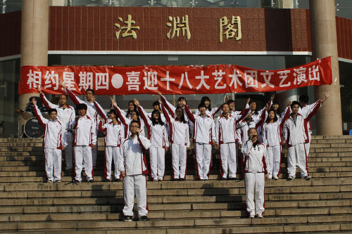 11月8日11:40,我校艺术团在法渊阁前举行了“相约星期四•喜迎十八大”文艺演出。