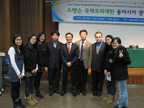 国际环境法模拟法庭大赛是由美国史丹森大学法学院(Stetson University College of Law)主办、在国际环境法领域具有广泛国际影响的年度模拟法庭大赛。大赛分地区选拔赛和决赛两个阶段,地区选拔赛分拉丁美洲赛区、北美太平洋赛区、北美大西洋赛区、东亚赛区等八个赛区进行。从2008年起,我校连续五年受到美国史丹森大学法学院的邀请,直接参与美国的国际决赛,并在历年的比赛中均取得了优异成绩。今年是东亚地区选拔赛举办的第一年,韩国崇实大学法学院(Soongsil University College of Law)承办了本次地区选拔赛,吸引了菲律宾大学、韩国首尔大学、韩国梨花女子大学、韩国崇实大学、泰国国立法政大学、尼泊尔加德满都法学院等10多支代表队的参与。