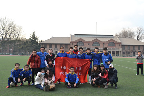 为了响应“为祖国健康工作50年”的号召,促进与其它学校法学院研究生之间的交流,我校研究生院足球队参加了由清华大学法学院研究生会主办的北京四校法学院研究生足球联赛,联赛在北京大学法学院、中国人民大学法学院、中国政法大学研究生院及清华大学法学院之间激烈展开,最后我校代表队,勇战三方、喜摘桂冠。我校史新祥同学以6粒进球荣获本次比赛的最佳射手奖。