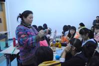 赵红梅老师通过演示和现场指导的方法,先教授给同学们基础针织技巧,随后循序渐进的指导同学们学习针织围巾、连指手套、毛线帽等生活中实用物品。在此课程上,同学们怀着浓厚的学习兴趣,看着一个个精美的针织作品在赵红梅老师灵巧自得的手中诞生,并在老师的悉心指导下实际操作,纬编、经编、成圈,在平凡的编织里感受着舞动手指的风采。赵老师为人亲切和善,她在课堂上悉心的教学,耐心的指导让同学们非常感动,一位同学告诉笔者,面对零基础的他们,老师手把手地教,一遍又一遍的重复要点,没有任何抱怨,让他们收获了很多。